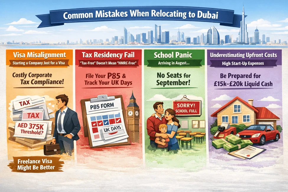 Visa Misalignment: Starting a company just to get a visa, then realising the corporate tax compliance costs (AED 375k threshold) and Small Business Relief expiration outweigh the benefits.